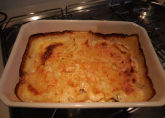 - Verse tout dans un plat allant au four ( j’adore cette expression , qu’on trouve partout : « dans un plat allant au four » …. Comme si une andouille allait mettre au four un saladier en plastique !! )