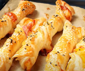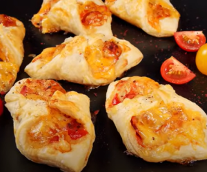 Sur la meme chaine youtube , une autre recette de feuilleté …. Original , ca change avec des tomates dedans , et la forme finale est sympa …. et c’est facile !!!! On a changé pas mal la recette ( l’ado et les champignons …… ) Les ingrédients La préparation